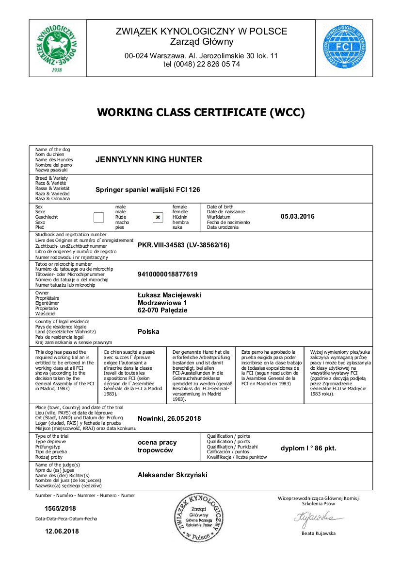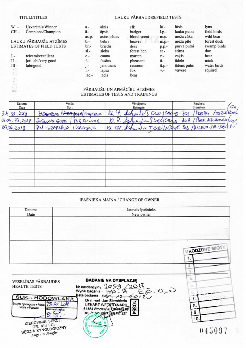 nr rodowodu: LV-38562/16, PKR.VIII-34583